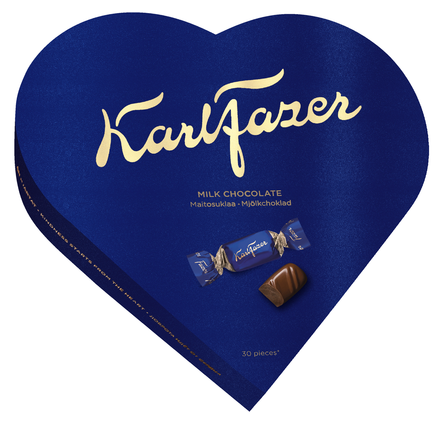 Suomen rakastetuin suklaa, jonka ainutlaatuisen täyteläisen maun ovat taanneet parhaat raaka-aineet jo vuodesta 1922 saakka. Tunnistat aidosta maidosta valmistetut suklaakonvehdit maun lisäksi myös sinisestä kääreestä, jonka kultainen Karl Fazer -allekirjoitus toimii laadun takeena. Kaunis sydämenmuotoinen suklaarasia on täydellinen lahja. Noudatamme kaakaonhankinnassamme Fazerin kaakaovisiota. Lue lisää www.fazercocoavision.com.