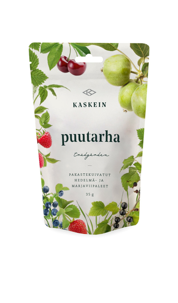 kirsikka (23%), omena (20%), vadelma (16%), mustikka (15%), mansikka (14%), mustaherukka (12%)