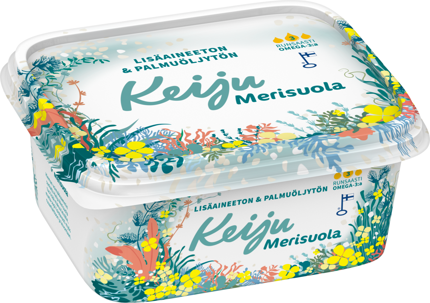VegaaninenKeiju Merisuola on täyteläinen ja maukas levite, jossa yhdistyvät luonnon oma rypsiöljy ja hienonnettu merisuola. Hieman voimakkaammin suolattu Keiju Merisuola tuo lisää makua leivälle, mutta sopii loistavasti myös ruuanlaittoon ja leivontaan.