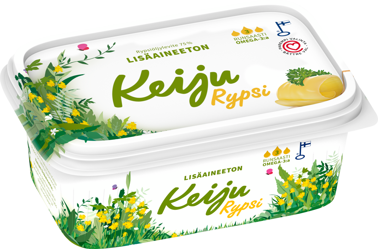 Lisäaineeton Keiju Rypsi on luonnollisempi vaihtoehto, joka on täynnä makua. Se sisältää lasten normaaliin kasvuun ja kehitykseen tarvittavia välttämättömiä rasvahappoja sekä runsaasti luuston kehitykseen tarvittavaa D-vitamiinia sekä kehollemme tärkeitä omega-3-rasvahappoja. Keiju Rypsi on helppo tapa edistää terveellisiä elintapoja sekä tasapainoista ja monipuolista ruokavaliota. Sipaise sitä leivälle, käytä paistamiseen tai leivontaan.