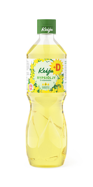 VegaaninenKeiju D-vitaminoitu rypsiöljy sisältää D-vitamiinia, joka tukee elimistön luonnollista vastustuskykyä eli immuunijärjestelmää sekä lihasten normaalia toimintaa. Tuote sopii monipuoliseen ruoanlaittoon, leivontaan ja salaatinkastikkeisiin. Jo ruokalusikallisesta (10 g) tuotetta saat 40 % D-vitamiinin päivittäisestä saantisuosituksesta. Muista myös terveellisen elämäntavan sekä monipuolisen ja tasapainoisen ruokavalion merkitys.