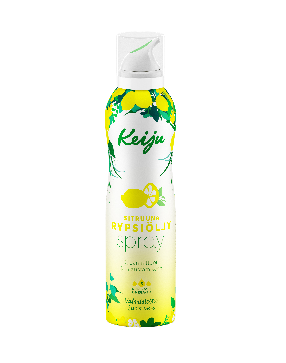 VegaaninenKeiju sitruuna rypsiöljyspray 200 ml on monikäyttöinen tuote päivittäiseen ruuanlaittoon. Sprayn avulla voi helposti, tarkasti ja tasaisesti maustaa minkä tahansa ruoan hetkessä tuoden siihen lisää hyvää makua eikä pullo sotkeennu öljyyn. Lisäaineeton rypsiöljy on pakattu erilliseen pussiin pullon sisälle eikä sisällä lainkaan ponneainetta.