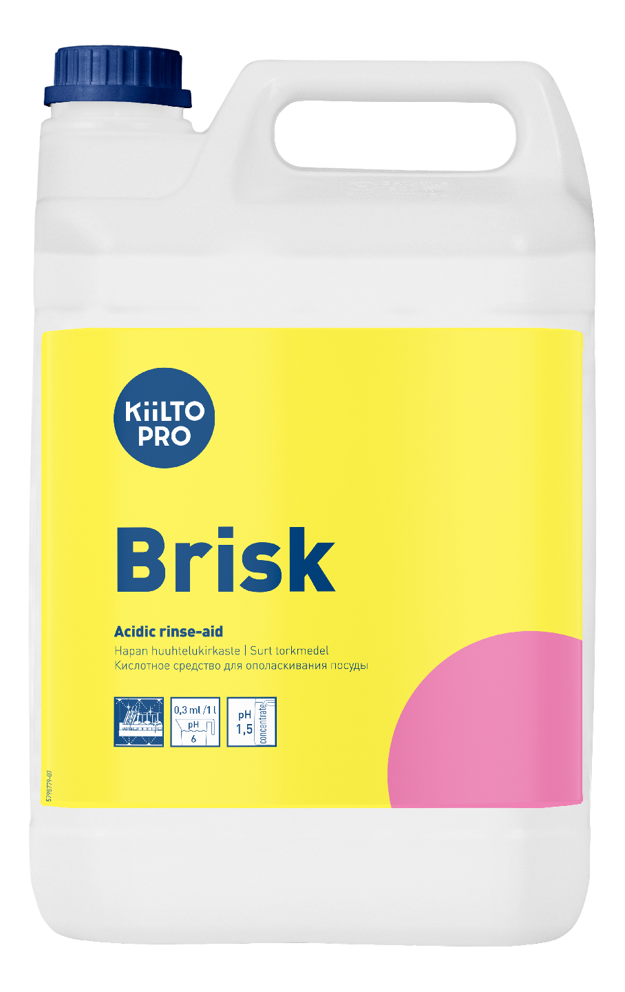 Hapan, erityisesti koviin vesiin kehitetty huuhtelukirkaste. Nopeuttaa astioiden kuivumista ja estää pisarajälkien muodostumista kovissa vesissä. Estää tehokkaasti kalkkisaostumien muodostumista astianpesukoneeseen. Annostellaan automaattiannostelijan avulla. Hajustamaton. Käyttöliuoksen pH 6. Ammattikäyttöön.