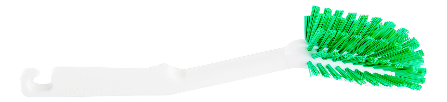 Laadukas ja kestävä kotimainen astianpesuharja astioiden käsinpesuun värikoodatuilla harjaksilla. Lämmönkesto + 130 °C. Ammattikäyttöön.