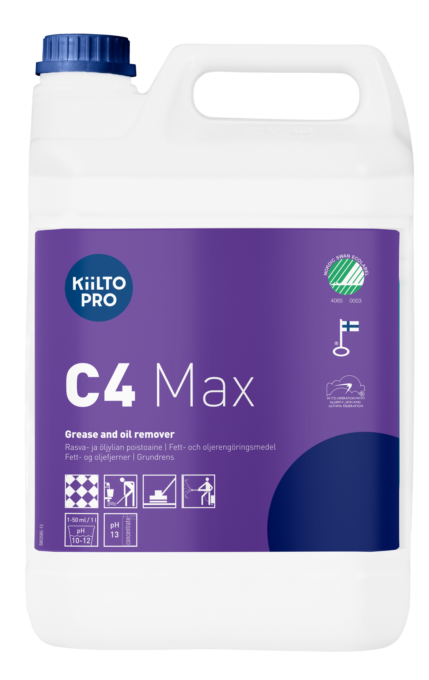 Öljy- ja rasvalian irroittamiseen emäksisiä aineita sietäviltä pinnoilta. Voimakkaasti emäksinen. Tehokas myös kovassa ja suolaisessa vedessä. Hajusteeton. Liuoksen pH 10. Osa Kiilto Pro Natura -sarjaa, valmistettu uusiutuvista raaka-aineista.