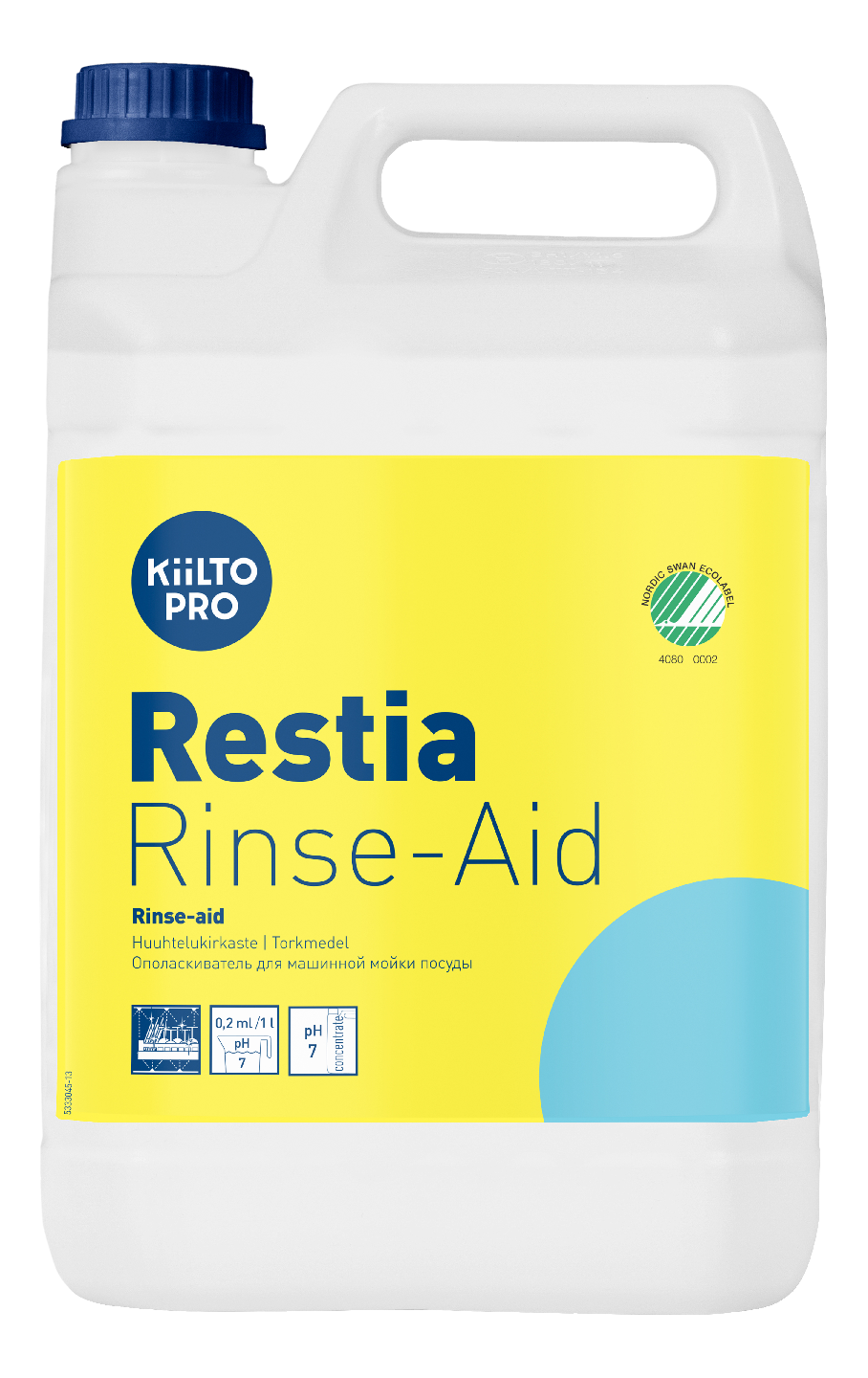 Huuhtelukirkaste koneelliseen astianpesuun pehmeissä ja keskikovissa vesissä. Nopeuttaa astioiden kuivumista jättäen hohtavan kirkkaan lopputuloksen. Estää vesipisaroiden kuivumisjälkien muodostumisen astioiden pinnalle. Hajusteeton. Käyttöliuoksen pH 7. Ammattikäyttöön.