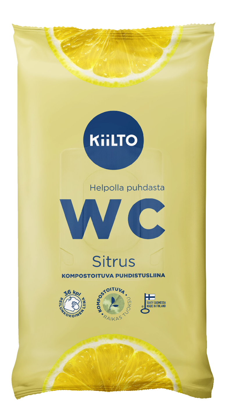 Kotimainen käyttövalmis Kiilto WC puhdistusliina Sitrus puhdistaa helposti ja tehokkaasti kaikki WC- ja kylpyhuonetilojen pinnat. Jättää pinnoille puhtaan raikkaan sitrustuoksun. Ympäristöystävälliset, kompostoituvat liinat on pakattu kierrätettävään muoviin.