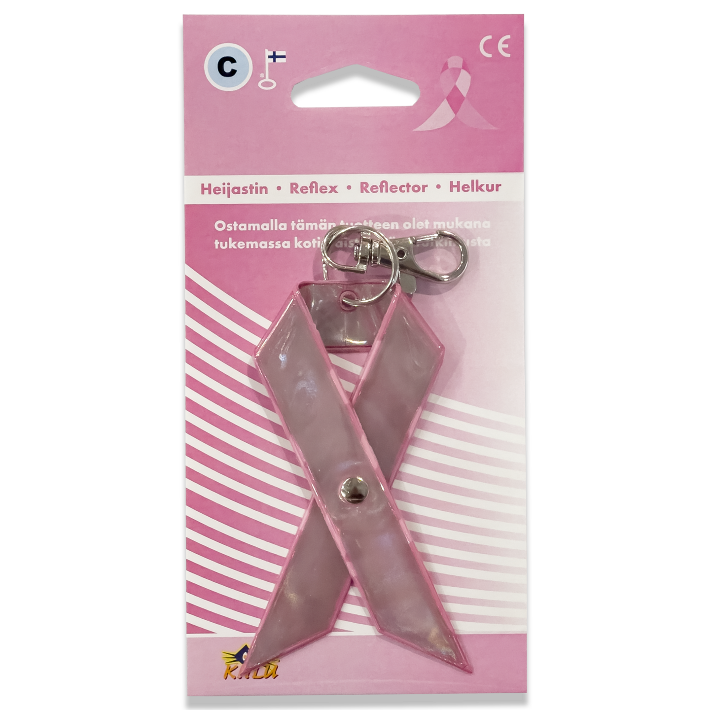 Tuote on valmistettu 3M Scotchlite heijastinkalvosta. EN 13356 tyyppitarkastettu. Kiinnitä heijastin oikealle puolellesi polven korkeudelle. Heijastimen pitää heilua vapaasti ja näkyä sekä eteen, että taakse. Vaihda naarmuuntunut tai vahingoittunut heijastin uuteen. Heijastinta tulee käyttää hämärässä ja pimeällä - myös taajamissa. Ostamalla tämän tuotteen tuet Roosa nauha -keräystä 0,50 eurolla.