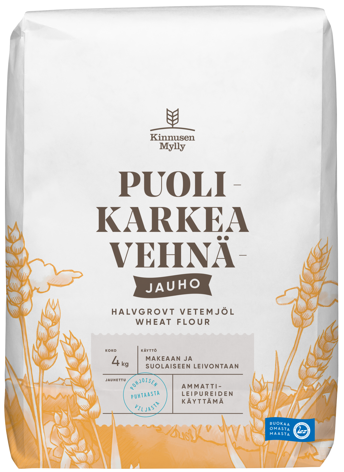Kinnusen Mylly Puolikarkea vehnäjauho 4 kg