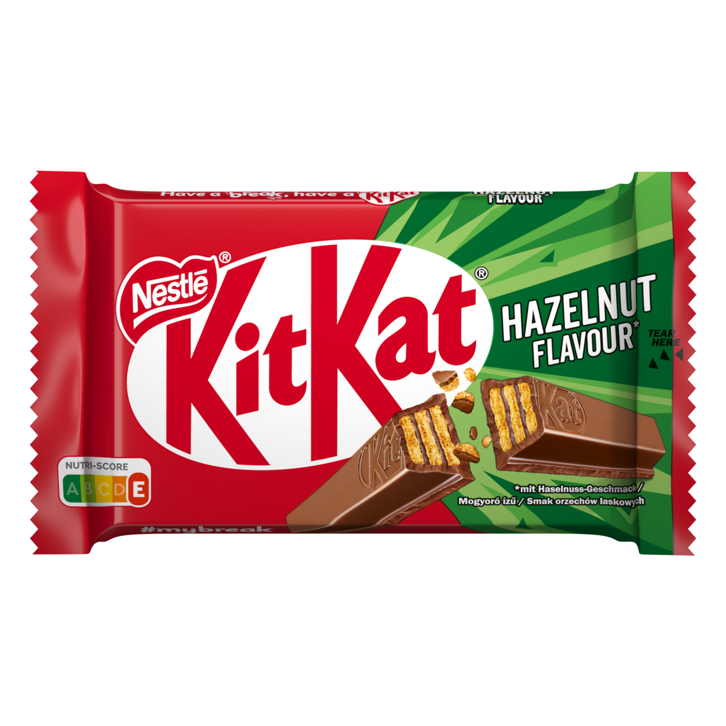 Neljä rapeaa vohvelikeksiä hasselpähkinän makuisella maitosuklaakuorrutteella (66%). Sisältää kaakaovoin lisäksi muita kasvirasvoja.