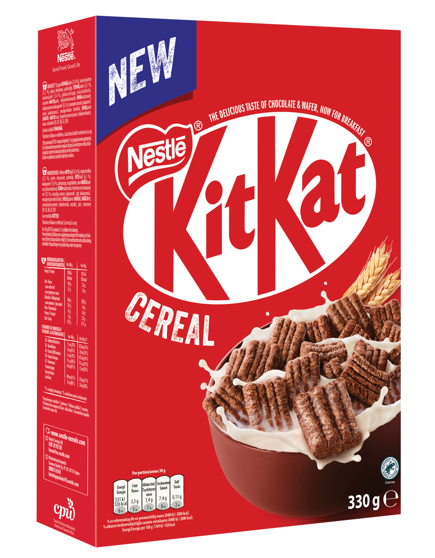 Aloita päiväsi NESTLÉ KITKAT -muroilla ja nauti ikonisen KITKAT-välipalapatukan inspiroimasta mausta. Jokainen rapea muro on valmistettu täysjyväviljasta ja päällystetty suklaakuorrutteella, joka sulaa suussa ja tuo aamiaiselle ylellisen vivahteen. Tarjoa maidon tai kasvipohjaisen vaihtoehdon kanssa ja lisää tuoreita hedelmiä täydelliseen aamiaiseen.