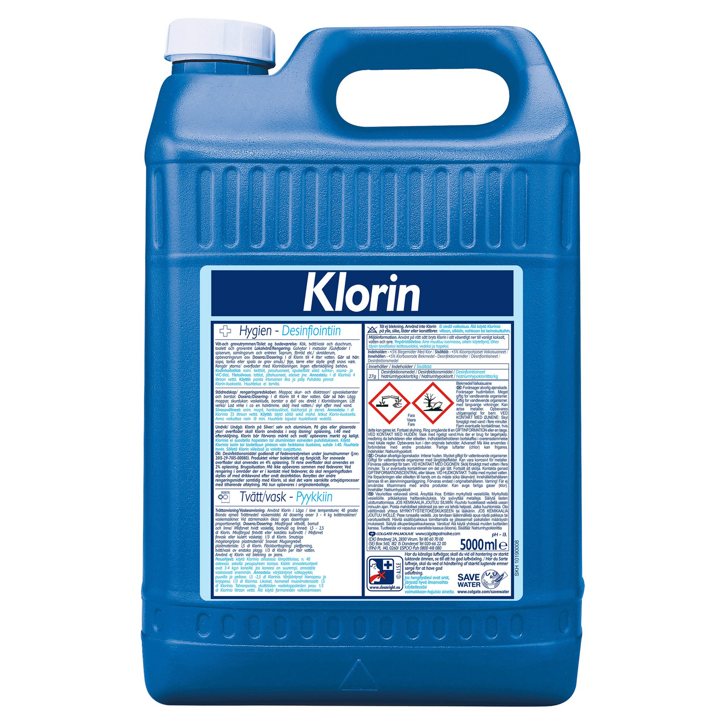 Sisältää/Innehåller: <5% Klooripohjaiset Valkaisuaineet/Klorbaserade Blekmedel, 27g/kg desinfiointiaine/desinfektionsmedel, natriumhypokloriittia/natriumhypoklorit.