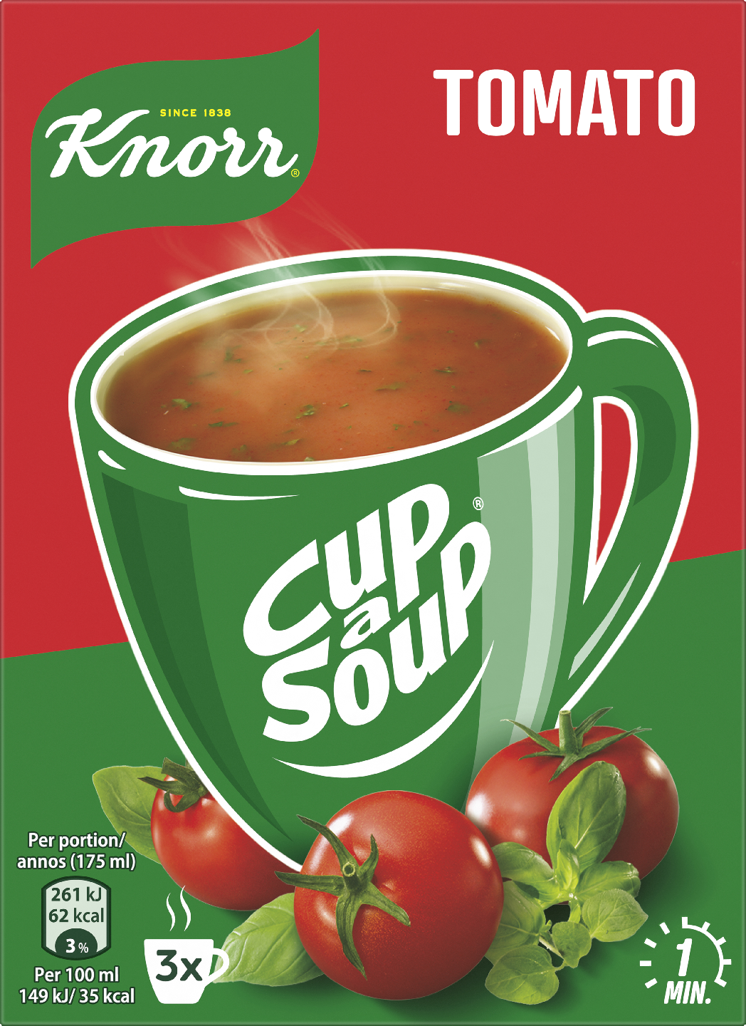 Knorr Cup a Soup Tomaatti -pakkaus sisältää kolme annospussia, joista jokaisesta valmistat kupillisen herkullista tomaattikeittoa. Valmistaminen on nopeaa ja vaivatonta eikä se vie kuin minuutin ja kuuma, herkullinen keitto on valmis! Täyteläinen tomaattikeitto on helppoa arkiruokaa parhaimmillaan – kevyttä ja maukasta.