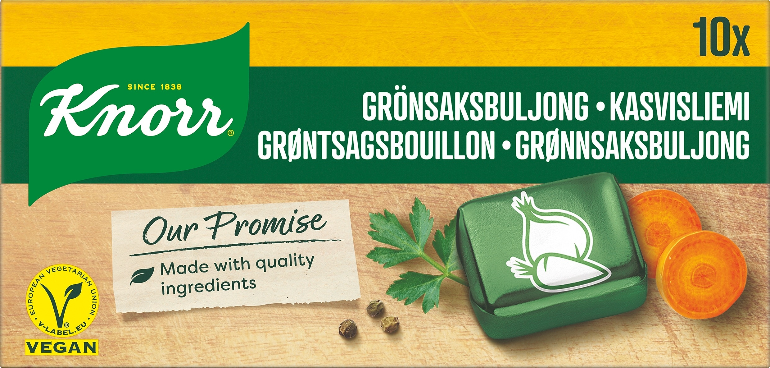 Knorr liemikuutiot tuovat täyteläisen maun ruokaan helposti. Lisää Knorr Liemikuutio Kasvis kastikkeeseen, keittoon tai pataruokaan – onnistut aina! Valitse oma suosikkisi, Knorr Liemikuutiot antavat makua jokaiselle aterialle. Täyteläinen maku ruokaan helposti. Annostelu: sekoita 1 kuutio ½ litraan kiehuvaa vettä. Ei lisättyä natriumglutamaattia tai sokeria. Vastuullisesti viljellyt kasvikset, yrtit ja mausteet. 100% luonnollisia ainesosia.