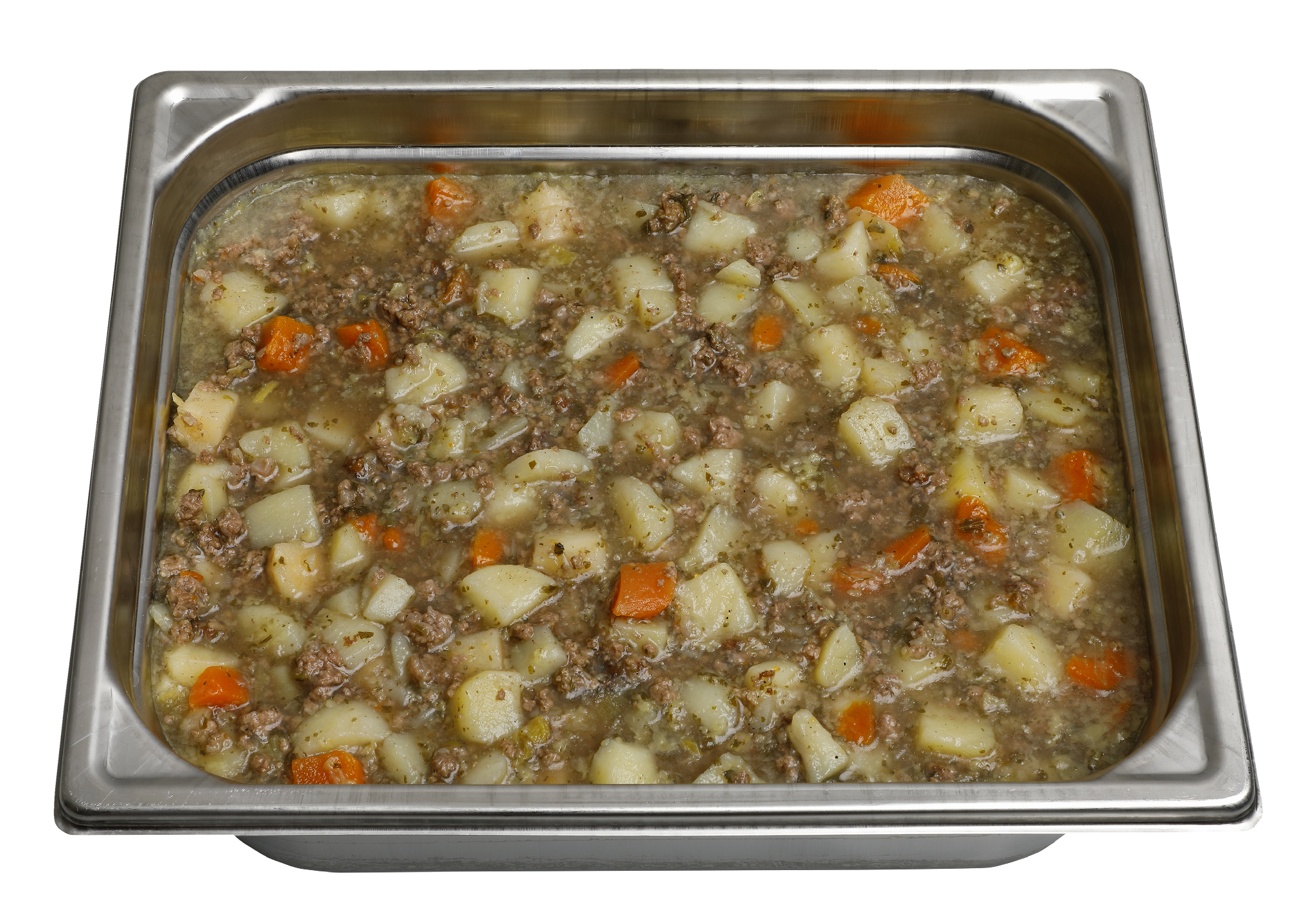 Peruna, lihaliemi (vesi, naudan luut, naudanliha, sipuli, mausteet (mustapippuri, maustepippuri, laakerinlehti), suola), Snellmanin naudanliha 18 % (Suomi), vesi, tuoreet vihannekset (porkkana, sipuli, palsternakka, purjosipuli), jodioitu suola, persilja, lipstikka.