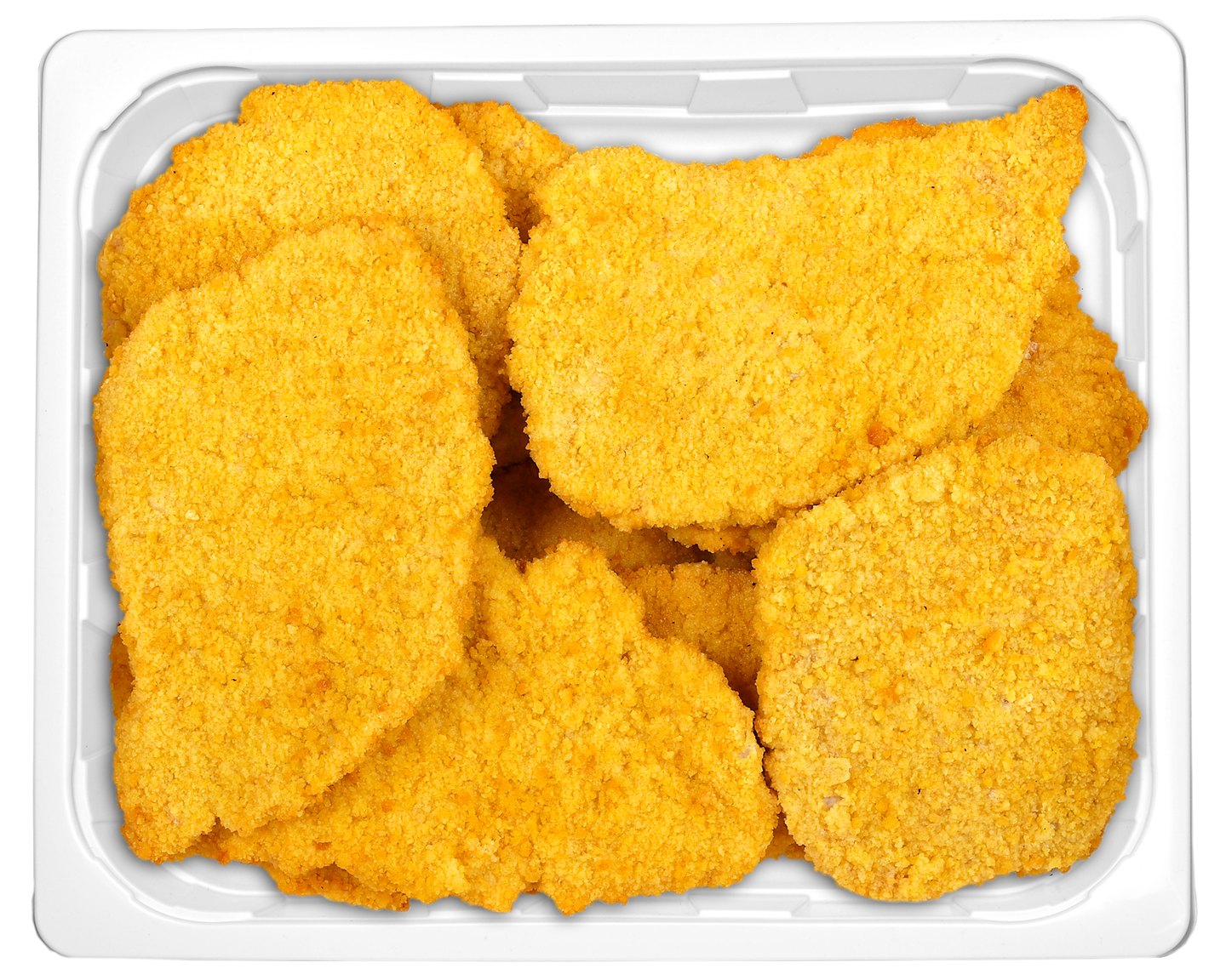 Porsaanfilee 72 % (Suomi), vesi, gluteeniton korppujauho (riisijauho, kikhernejauho, maissitärkkelys, suola, dekstroosi), kasviöljy (rypsi, rapsi), muunnettu tärkkelys (E4122, E1414), stabilointiaineet (E407a, E451, E450, E415), happamuudensäätöaineet (E326, E262), jodioitu suola, sokeri, MUNANVALKUAISJAUHE, nostatusaine (E500), hapettumisenestoaine (E301).