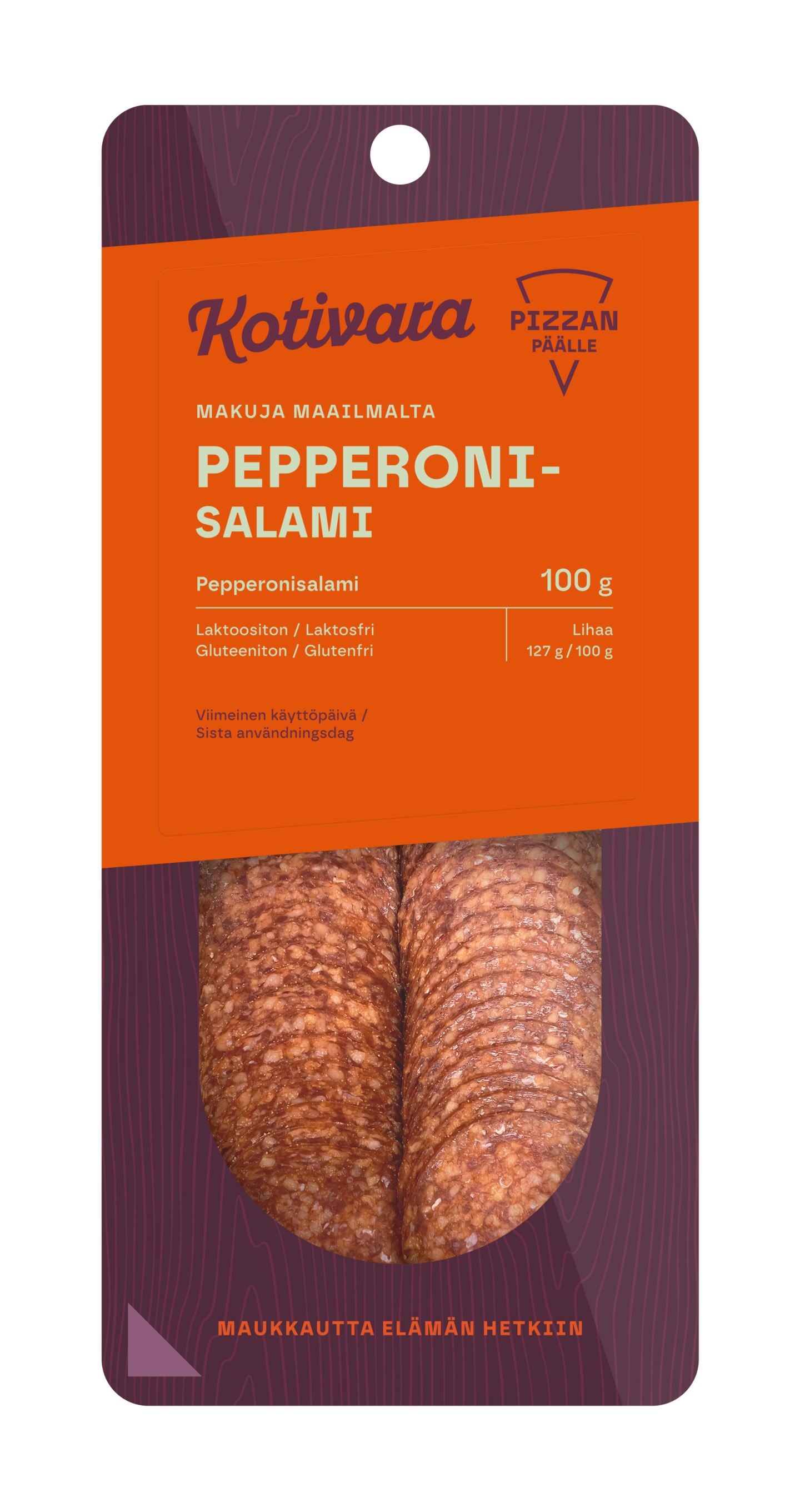 Aika italiainen. Kotivaran salameissa maistuvat Välimeren alueen maut, ja niiden valmistuksessa korostuvat käsityö ja hidas kypsytys, joiden ansiosta tuotteessa on aina reilusti makua. Ainutlaatuinen maku perustuu nimittäin pitkään kypsytysaikaan ja resepteihin, jotka ovat hioutuneet jo vuodesta 1943 lähtien. Pepperonisalami on mausteinen siivu niin leivän päälle kuin pizzoihin ja ruuanlaittoon. On aika kokeilla jotain uutta. Laktoositon, gluteeniton, maidoton.