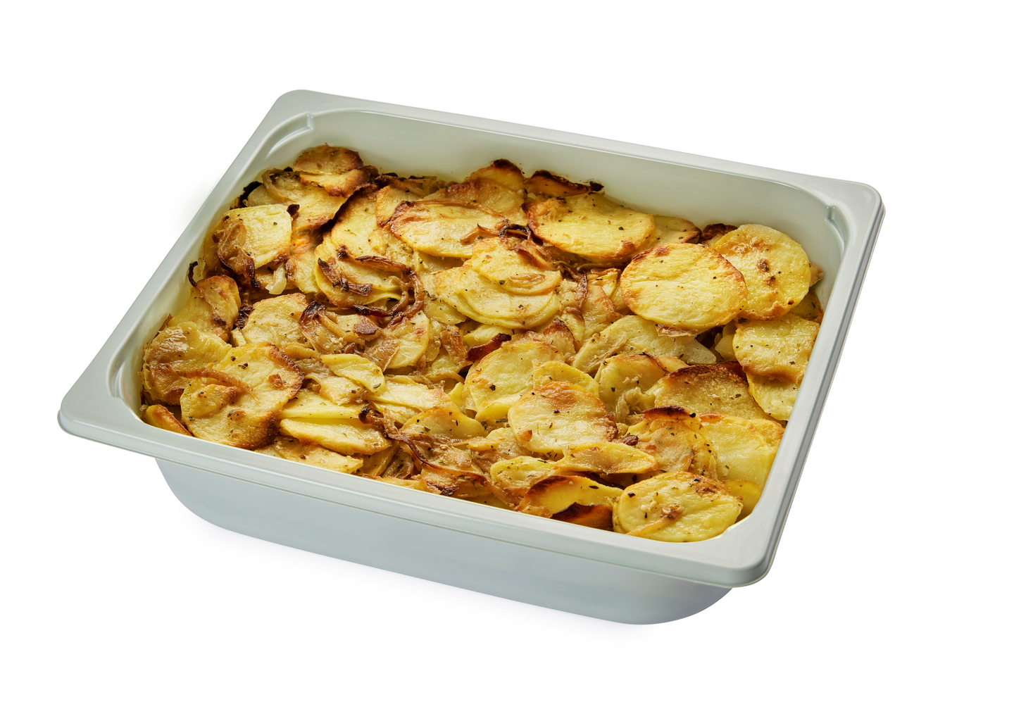 Peruna, sipuli, kasviöljy (rapsi), valkosipulimurska (valkosipuli, sokeri, valkoviinietikka), suola, pesto (auringonkukkaöljy, basilika, suola, maissitärkkelys, valkosipuli, viinietikka, fruktoosi), maustetahna (suola, auringonkukkaöljy, timjami, arominvahvenne (natriumglutamaatti), sokeri, täysin kovetettu rypsiöljy), basilica, mustapippuri. Maidoton, gluteeniton, vegaaninen.