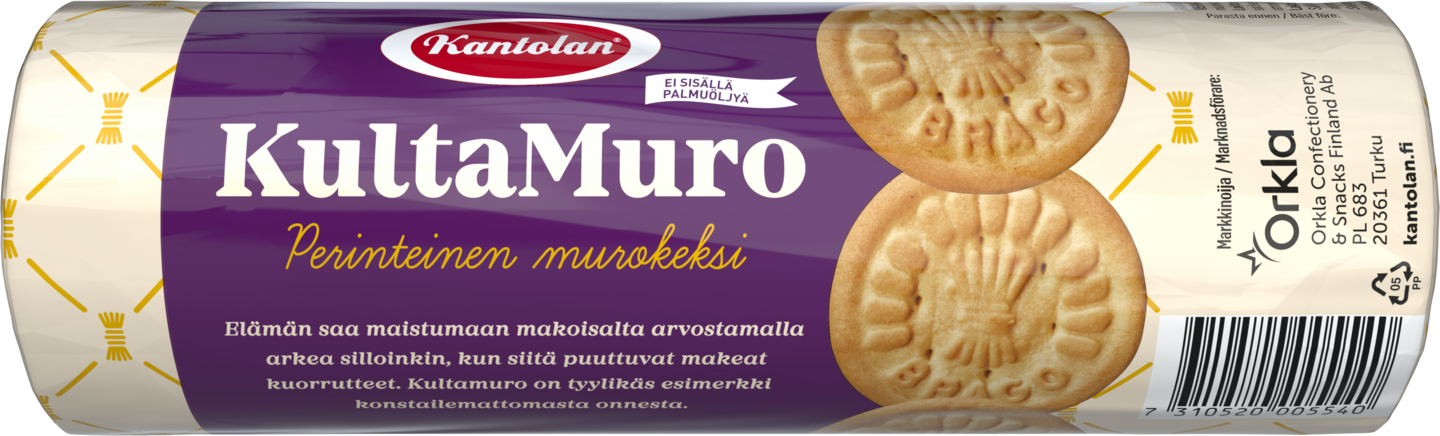 VegaaninenKulta Muro on perinteinen maukas ja rapea murokeksi joka sopii erinomaisesti leivontaan, kuten esimerkiksi juustokakkujen pohjaksi, mutta maistuu niin ihanalta myös sellaisenaan. Palmuöljytön.