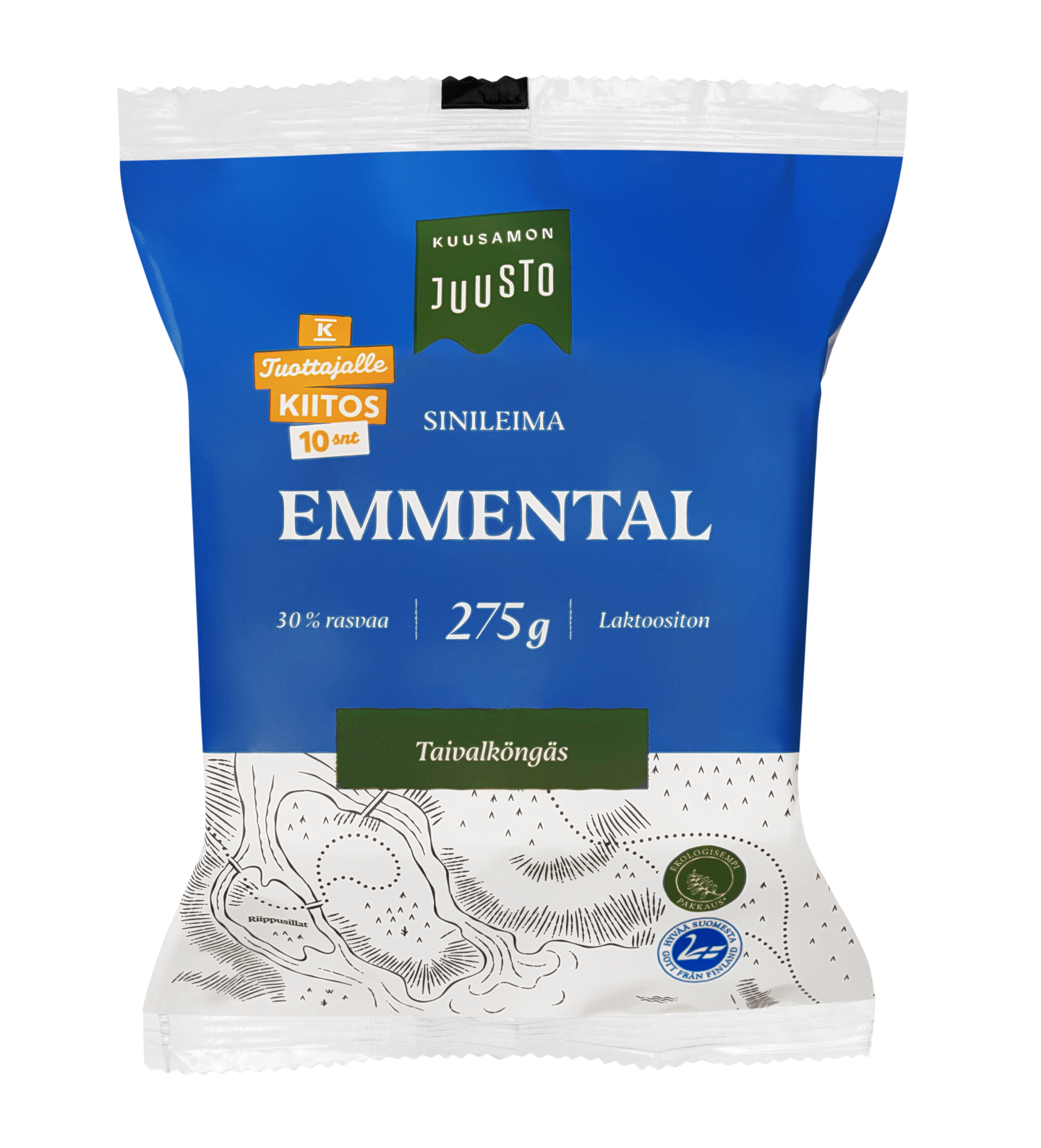 LaktoositonKuusamon Juusto sinileima Emmental on mieto emmentaljuusto. Se soveltuu erinomaisesti ruoanvalmistukseen, leivontaan, leivälle tai osaksi juustotarjotinta. Tuote valmistetaan Kuusamossa suomalaisesta maidosta.