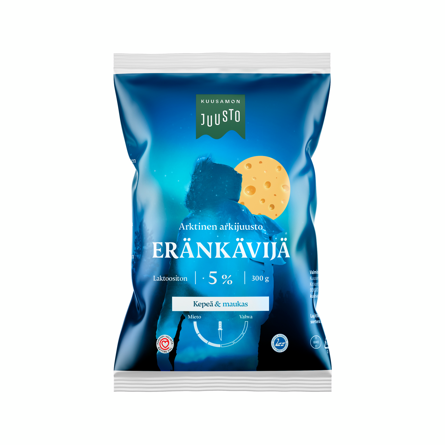 LaktoositonEränkävijä® 5% on kepeä ja maukas, jokaiselle maistuva arktinen arkijuusto. Mausta ei ole tingitty pienestä rasvaprosentista huolimatta. Eränkävijä® 5% juusto sopii erinomaisesti leivänpäälle, sekä ruoanlaittoon. Valitse Eränkävijä® 5% ja nauti kevyen maukkaista juustohetkistä!