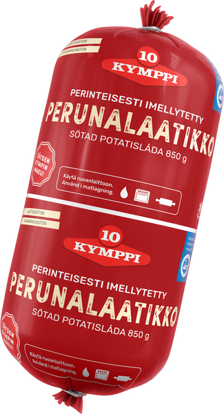 LaktoositonKymppi Perunalaatikko sose on aitoa hämäläistä perunalaatikkoa. Makea maku ja sileä, löysä rakenne syntyy perinteisesti imellyttämällä. Raakapakaste on käyttövalmista sosetta. Vanhanajan perunalaatikko paistetaan matalassa (+150 astetta) hauduttamalla vähintään kaksi tuntia. Imeltyminen jatkuu paiston aikana, laatikon pintaan ja reunoihin paistuu herkullinen rapea kuori. Sulatuksen jälkeen kypsennettävä tuote. Tuote on laktoositon ja kananmunaton.