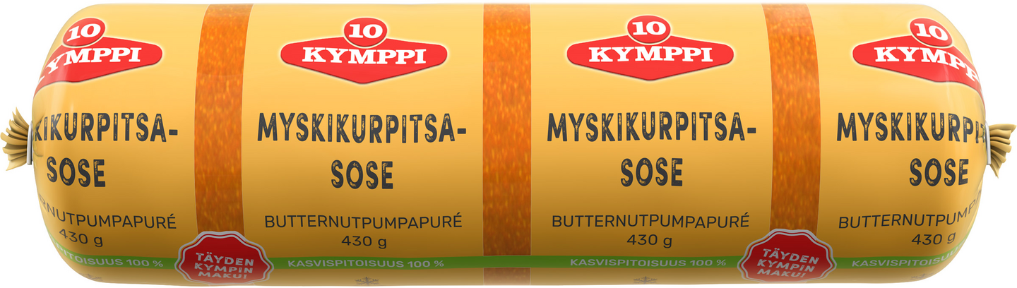 Kymppi Myskikurpitsasose on maukas ja monikäyttöinen raaka-aine. Raakapakastettu kasvissose on helppo tapa lisätä kasviksia ruoanvalmistuksessa ja leivonnassa. Sopii mm. keittoihin, laatikoihin ja leivontaan. Kypsennettävä ennen nauttimista. Tuotteen kasvispitoisuus on 100 %.