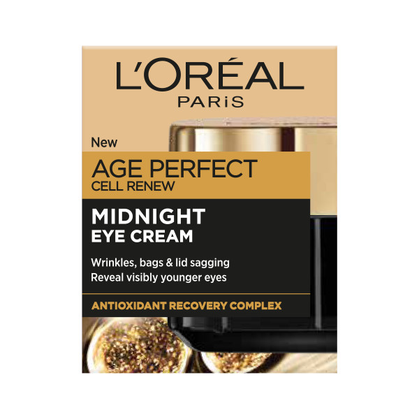 L'Oréal Paris Age Perfect Cell Renewal Midnight silkinpehmeä antioksidantteja sisältävä silmänympärysvoide rauhoittaa välittömästi silmänympärysalueen ihoa. Koostumus tukee ihon luonnollista uusiutumisprosessia ja auttaa silmänympärysihoa palautumaan yön aikana, joka on optimaalista aikaa ihon suojamuurin palautumiselle.