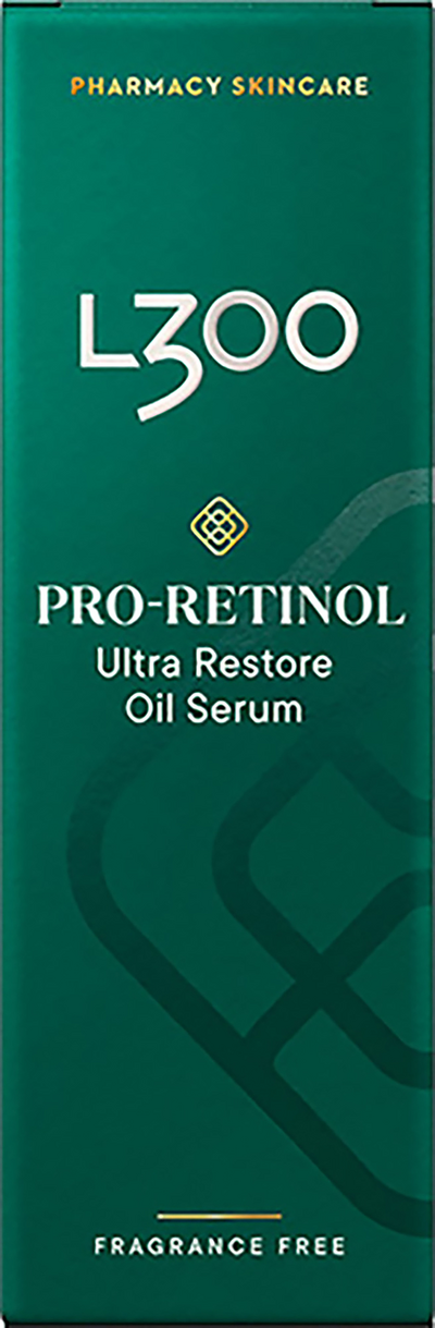 L300 Pro-Retinol Ultra Restore Oil Serum on voimakas pro-retinolia sisältävä kasvoseerumi, joka vähentää tehokkaasti ryppyjä ja hienoja juonteita sekä tekee ihosta vahvemman parantamalla ihon rakennetta. Pro-retinolilla on myös kiinteyttävä vaikutus ihoon. Sisältää kauraöljyä ja ihoa rauhoittavaa leväuutetta, kuten myös ihon suojakerrosta vahvistavaa sekä ihoa pehmentävää rypsiöljyä. Tuloksena on kosteutettu iho, jolla on parantunut ulkonäkö. Dermatologisesti testattu. Hajusteeton. Sopii kaikille ihotyypeille.