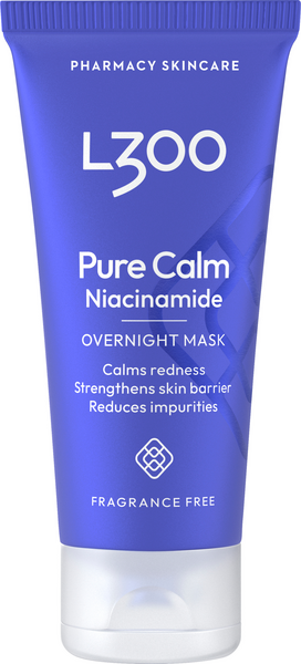 L300 Niacinamide Pure Calm Overnight Mask on yökäyttöön tarkoitettu kasvonaamio. Voidaan käyttää joka yö. Sisältää niasiiniamidia, joka torjuu epäpuhtauksia, vahvistaa ihon suojakerrosta ja vähentää punaisuutta. Täyteläinen koostumus, joka antaa runsaasti kosteutta. Sisältää myös ihoa rauhoittavaa cicaa (Centella Asiatica). Tuloksena on kirkkaampi ja tasapainoisempi iho, jossa on vähemmän epäpuhtauksia. Dermatologisesti testattu. Hajusteeton. Sopii kaikille ihotyypeille, erityisesti rasvoittuvalle/sekaiholle ja herkälle iholle.