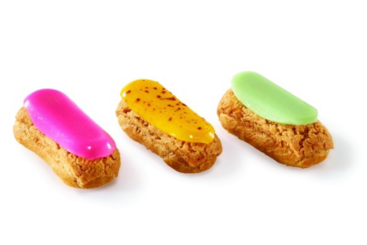 Uusi ja innovatiivinen muoto, vaihtoehto pyöreille macaron leivoksille! 3 eri herkullista makua; pistaasi, vadelma sekä eksotic. Soveltuu niin jälkiruoaksi kuin kahvin tai kuohuviinien kera nautittaviksi.