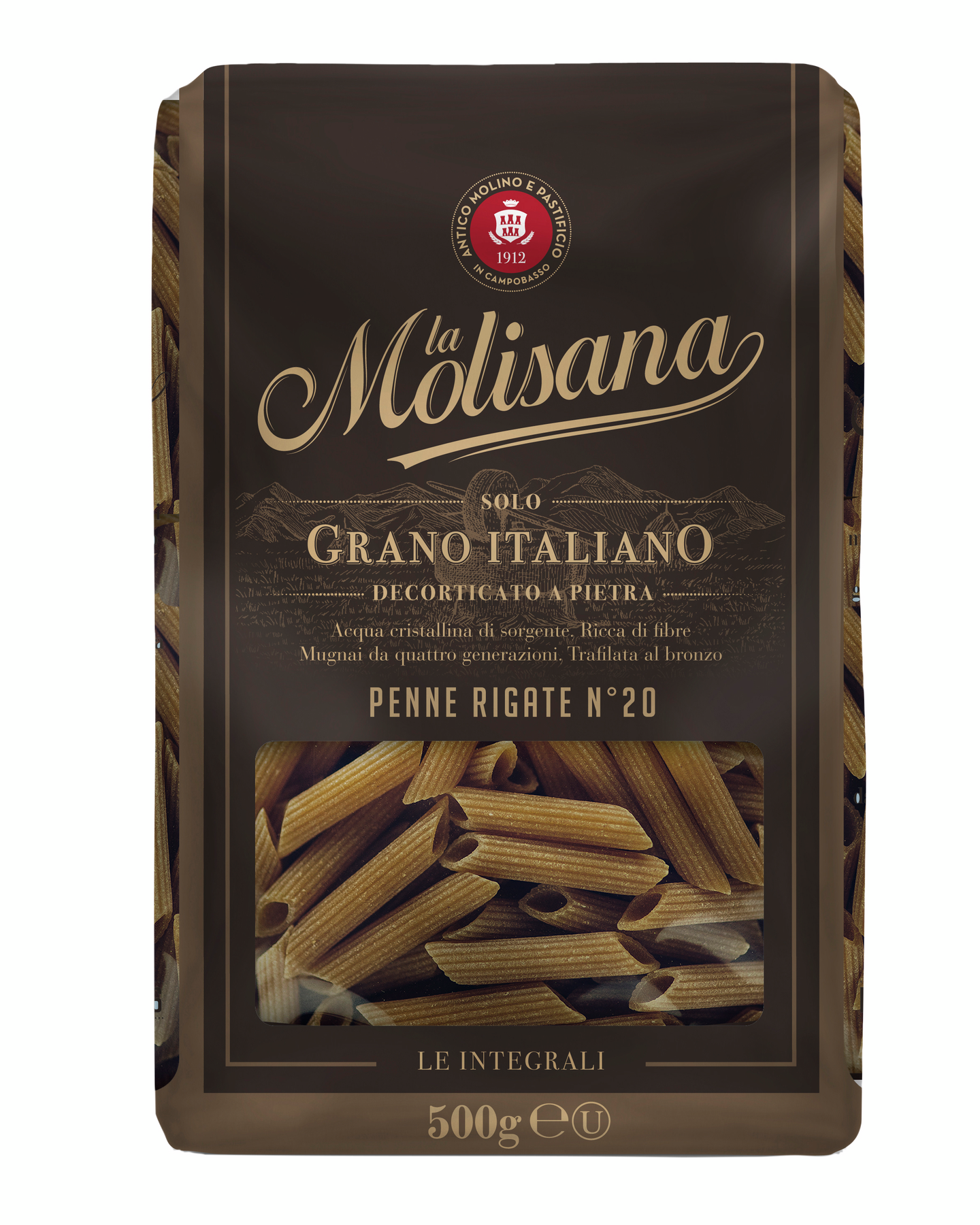 Täysjyvädurumpasta saa tumman värinsä täysjyväjauhosta ja näin ollen pastassa on korkeampi kuitupitoisuus kuin tavallisessa pastassa. La Molisana penne rigate integrali sopii hyvin esim. tomaattisen ragukastikkeen kera. Maista ja nauti.