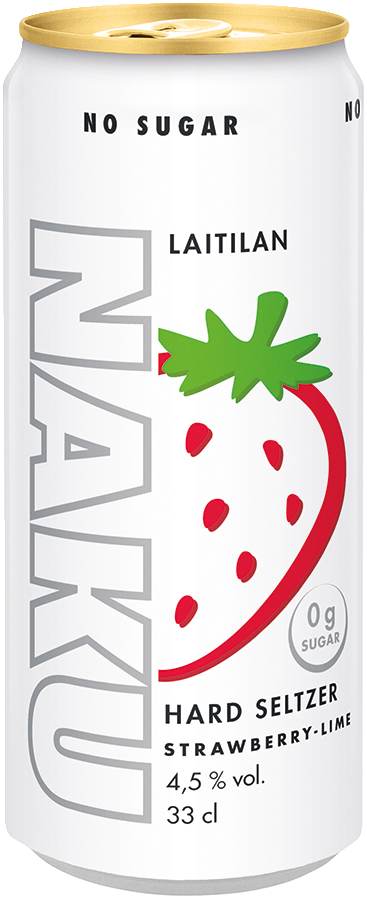 Mansikan- ja limenmakuinen makeuttamaton alkoholijuoma. Laitilan NAKU Hard Seltzer Strawberry-Lime 4,5 % on nimensä mukaisesti riisuttu kaikesta turhasta. Se on juoma henkilöille, jotka haluavat nauttia luonnollisesta mansikan ja limen mausta ilman sokeria, väriaineita, keinotekoisia makuja ja gluteenia. Suositellaan tarjoiltavaksi kylmänä.