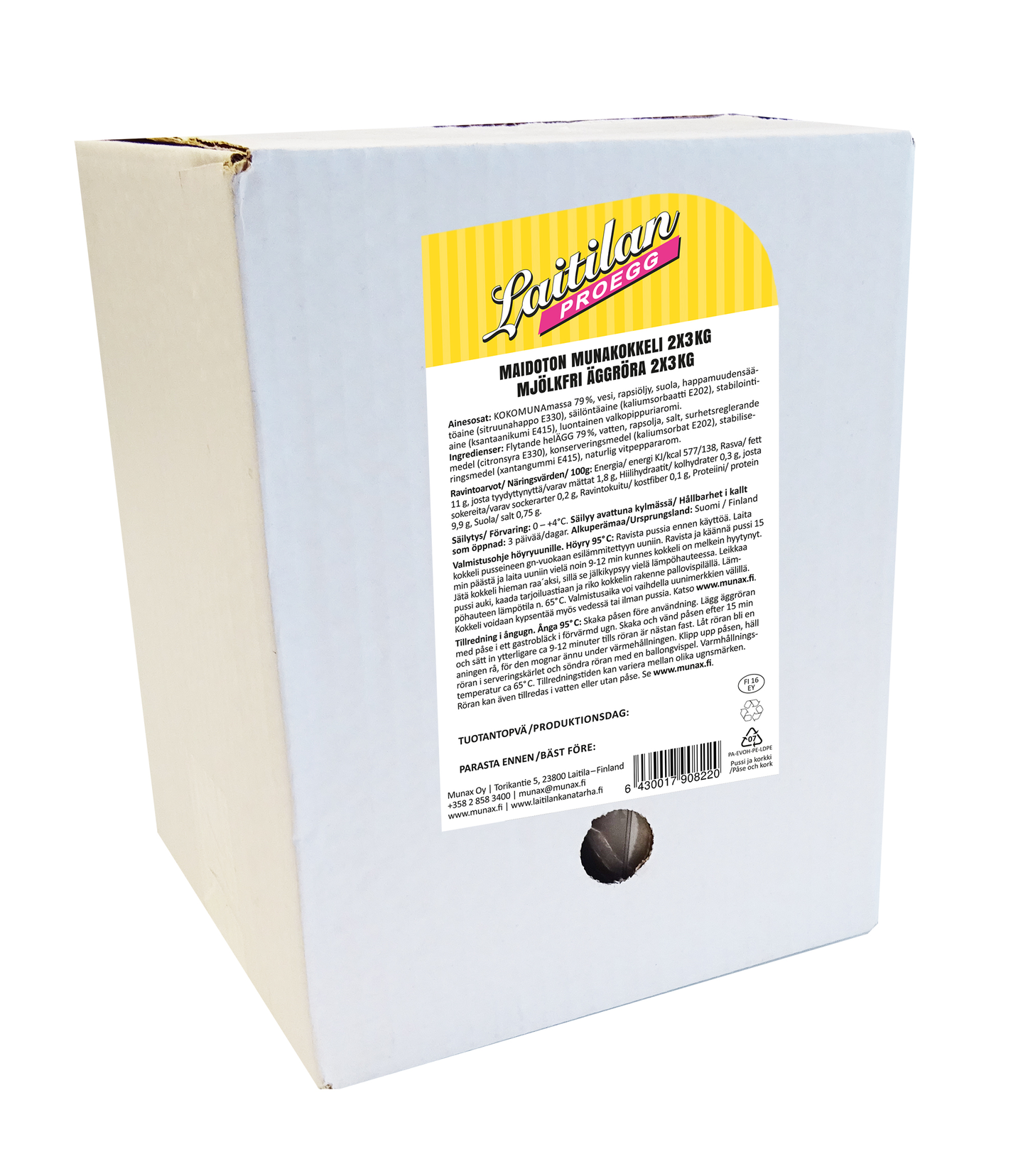 Maidoton munakokkeliseos tuo tehokkuutta ja vaivattomuutta hotellien, ravintoloiden ja muiden ammattikeittiöiden arkeen. Tuote on valmiiksi maustettu, joten se on käyttövalmis sellaisenaan. Munakokkeliseos soveltuu mainiosti myös munakkaiden ja piirakkatäytteiden valmistukseen. Tuotteen pidennetty säilyvyysaika tuo joustoa tilauskäytäntöihin sekä varastonhallintaan. Tämä pastöroitu maidoton munakokkeliseos on valmistettu vastuullisesti tuotetuista, kotimaisista virikehäkkikanojen munista omalla tehtaallamme Laitilassa. Maidoton munakokkeliseos tarjoaa tasalaatuisen lopputuloksen jokaisella käyttökerralla, vastaten ammattikeittiöiden vaativiin odotuksiin.