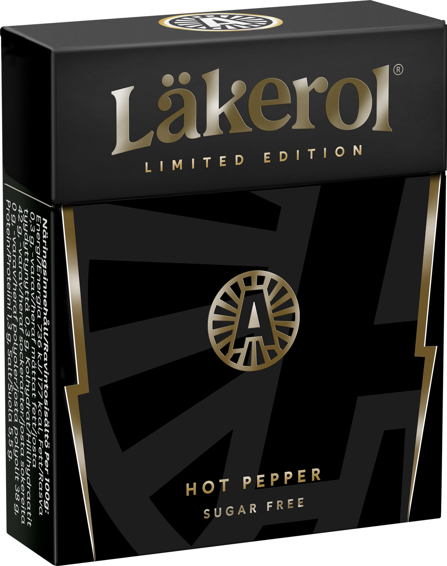 VegaaninenLäkerol Classic Hot Pepper -pastilli on intensiivinen yhdistelmä salmiakkia ja tulista chiliä. Pieni ja kätevä rasia on helppo ottaa mukaan minne tahansa. Läkerol-pastillit tarjoavat sokerittoman vaihtoehdon makeannälkään ja piristävät samalla päivääsi.