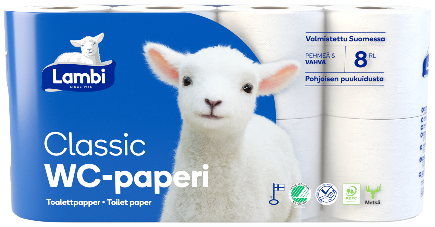 Lambi WC-paperi tuo suomalaista pehmeyttä elämääsi. Korkealaatuinen paperi on vahvaa ja pehmeää. Lambi WC-paperit valmistetaan puhtaasta suomalaisesta uusiutuvasta ensikuidusta Mäntän paperitehtaalla.