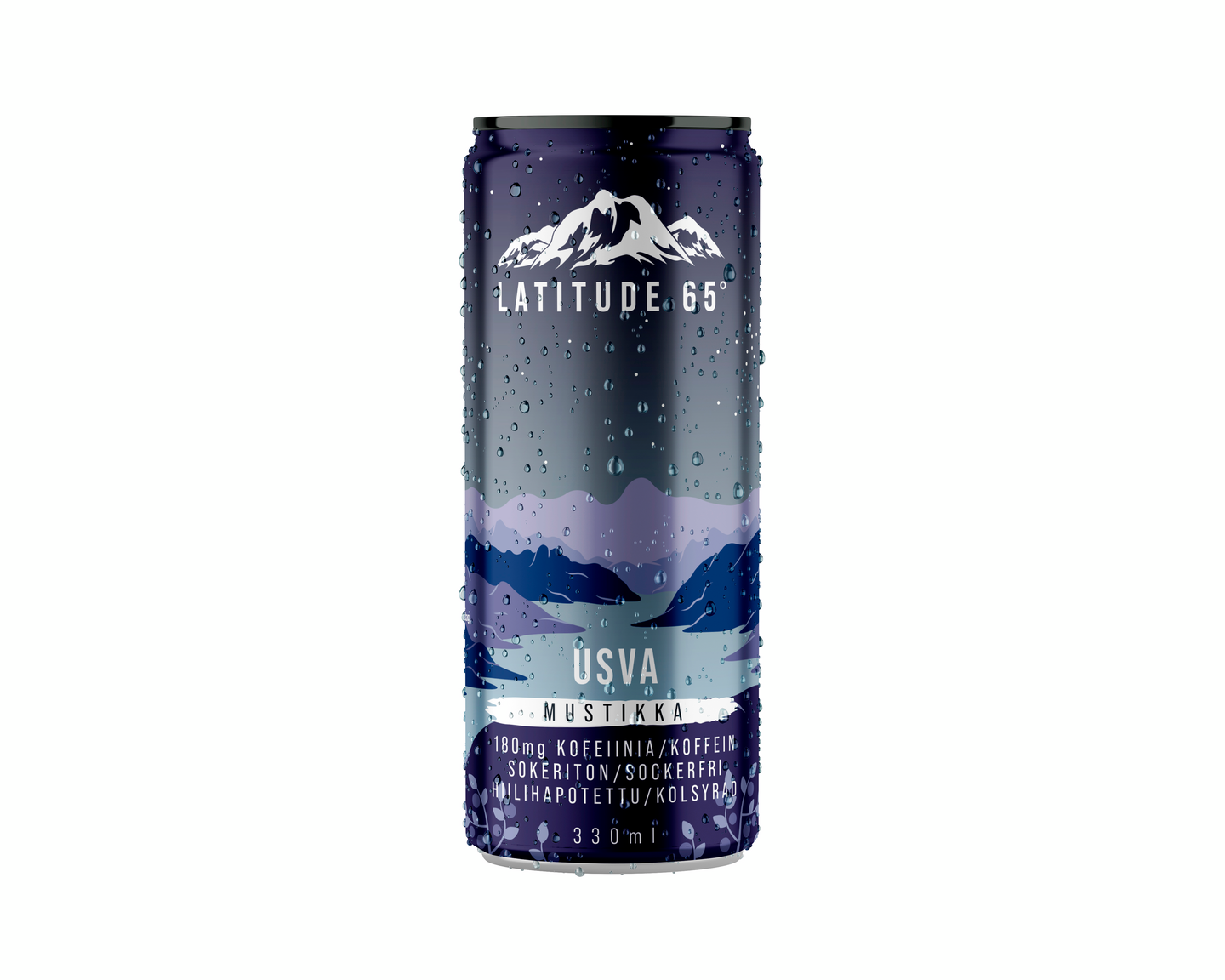 Latitude 65 Usva on luonnon innoittama, funktionaalinen kofeiinia sisältävä lifestyle-juoma suoraan Norrlannin sydämestä Pohjois-Ruotsista. Latitude 65 Usva on mustikan makuinen, sokeriton, hiilihapotettu energiajuoma, joka sisältää 180mg kofeiinia per annos ja siihen on lisätty hyödyllisiä B-vitamiineja (niasiinia, biotiinia ja B6-vitamiinia sekä foolihappoa. Latitude 65 Usva, ohut, häilyvä sumu, joka leijailee matalalla maan tai veden yllä on usein taianomainen ja kuvastaa luonnon kauneutta.
