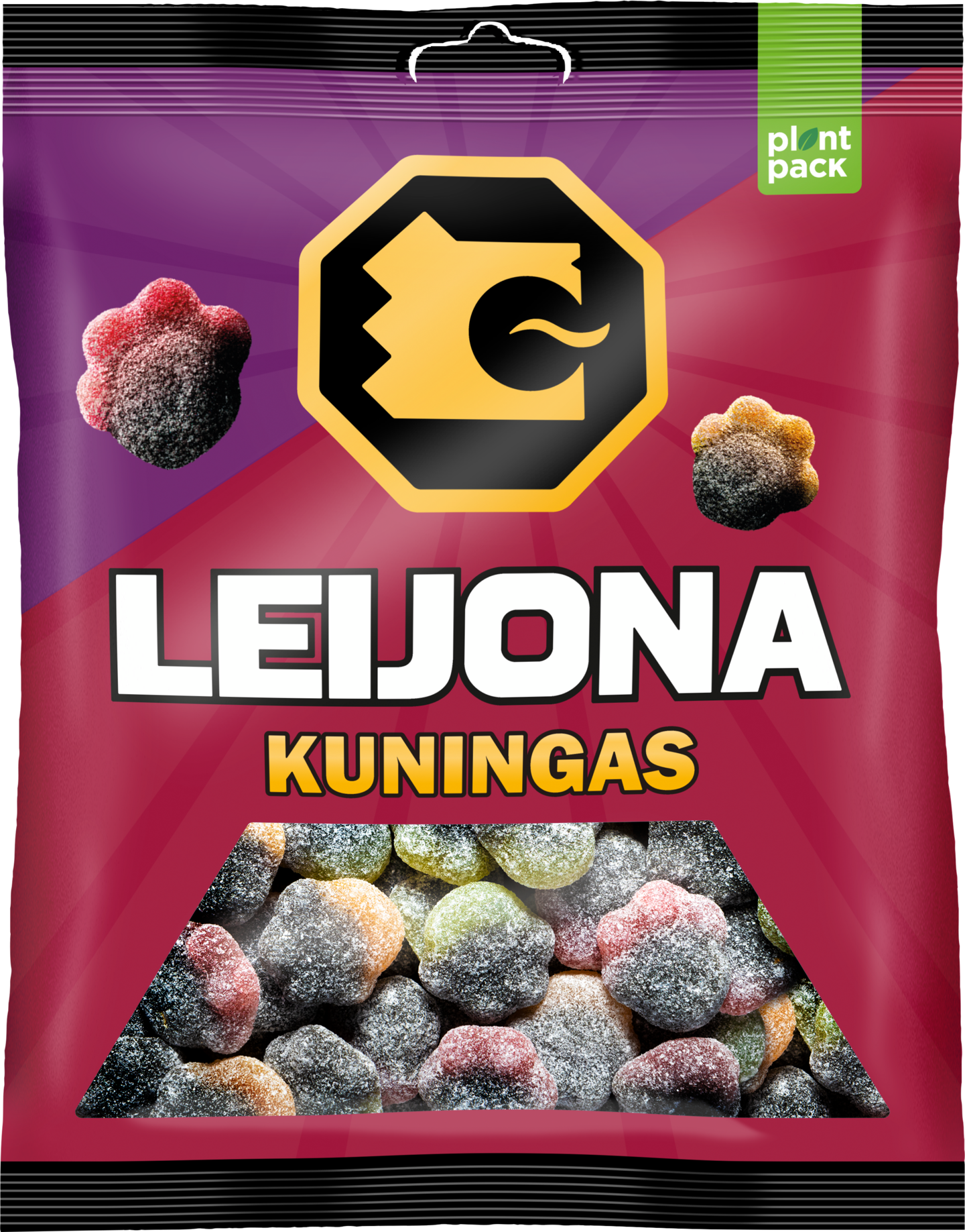 Karkit on pakattu pussiin, joka on valmistettu 50 % kasvipohjaisesta muovista.