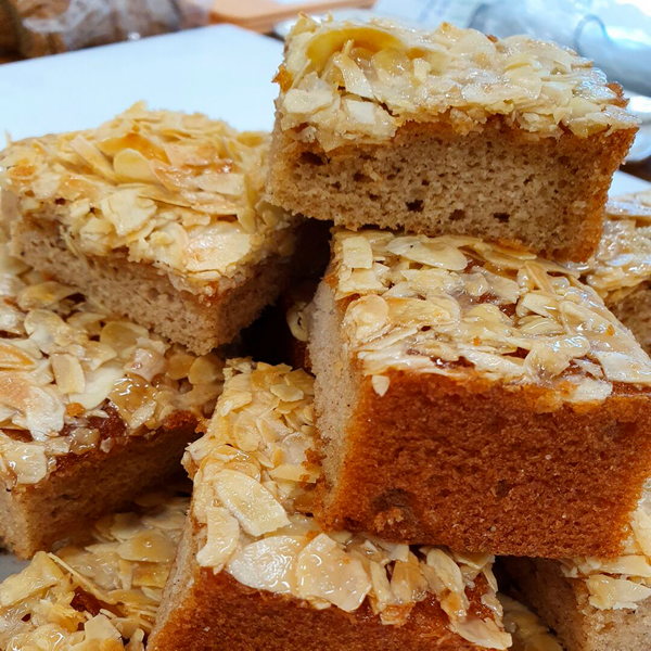 Sokeri, KANANMUNA, tärkkelys (peruna, riisi), kasviöljyt (rypsi, kookos, auringonkukka), vesi, muunnettu tärkkelys, MANTELIlastu (12%), nostatusaineet (E450, E500), glukoosisiirappi, hunaja, KERMA, emulgointiaineet (E481, E472e, E475, E471, E322 auringonkukkalesitiini), siirappi, suola, luontainen bourbonvanilja-aromi, kaneli, kardemumma, inkivääri, vaniljasokeri, sakeuttamisaine (E415).
