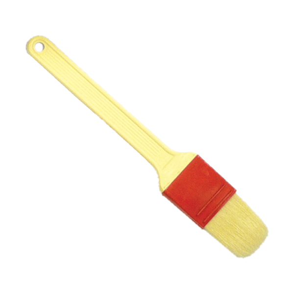 Voitelusivellin luonnon jouhista peltien ja vuokien voiteluun ammattikeittiössä. Leivinsiveltimen varsi muovia.