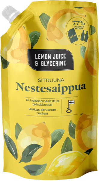 Lemon Juice and Glycerine Nestesaippua sitruuna täyttöpussi 550ml