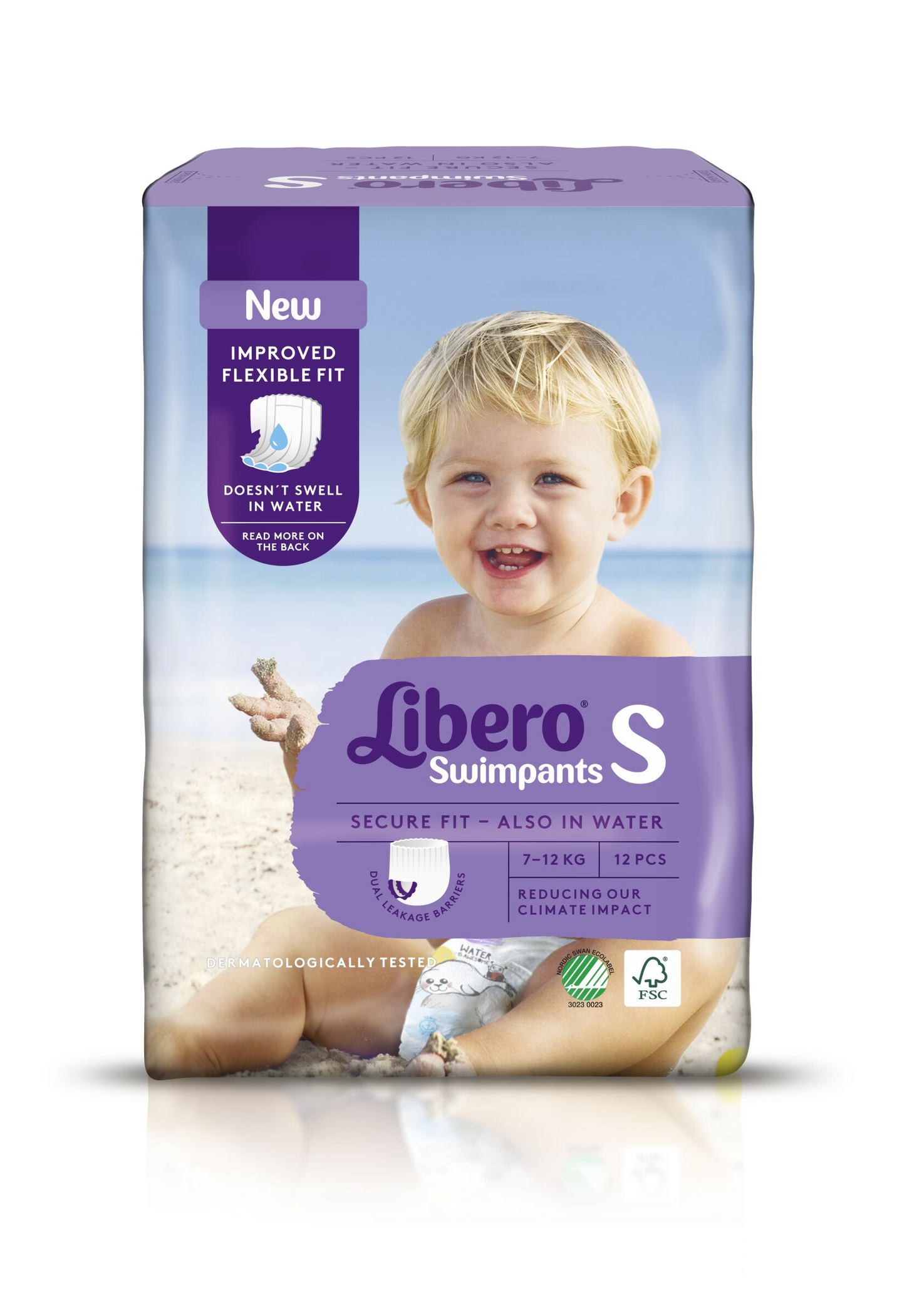 "Libero Swimpants koko Small on pehmeä ja joustava, housuvaippamallinen uimavaippa, joka sopii lapsille, jotka painavat 7–12 kg. Vaipassa on kaksinkertaiset vuotosuojat sekä erityinen ydin, joka ei turpoa, kun lapsesi leikkii vedessä. Vyötärö on pehmeä ja joustava, ja se istuu mukavasti lapsesi vatsan ympärillä. Käytännöllinen vaippa on myös helppo vaihtaa. Vaippaa vaihtaessa voit repiä vaipan sivut auki ja kiertää sen paketiksi. Liberon ilmastovaikutusten vähentämiseksi yli 60 % vaippapakkauksista on valmistettu kierrätysmuovista. Lisäksi Liberon vaippatehtaissa käytetään vain sertifioitua ja uusiutuvaa sähköä. Ne ovat dermatologisesti testattuja ja Joutsenmerkittyjä. Lisäksi ne on valmistettu FSC-sertifioidusta selluloosasta. Leikkisä kuviointi, jossa esiintyy vedestä nauttivia eläimiä. • Libero-uimavaippa koko Small lapsille, jotka painavat 7–12 kg – varma istuvuus myös vedessä.
