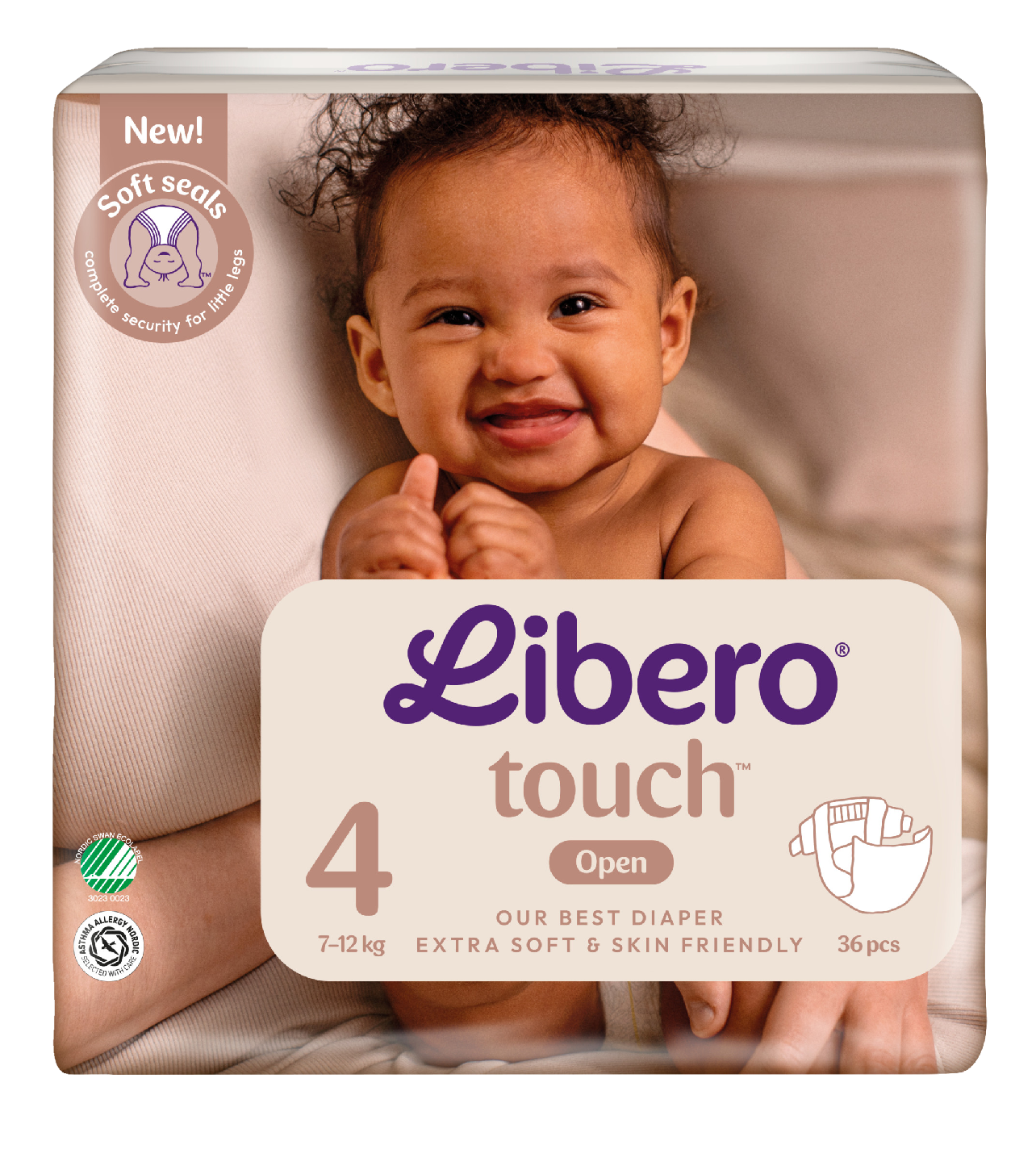 Libero Touch™ koossa 4 on Liberon pehmein ja paras teippivaippa vauvoille, jotka painavat 7–12 kg. Ihoystävällinen, hengittävä ja dermatologisesti testattu. Erittäin pehmeä joustava istuvuus ja täydellinen suoja pienten jalkojen ympärillä Soft seals -jalkaresorien ansiosta. Lisäksi takaosan ja sivujen erittäin pehmeä joustavuus takaa optimaalisen istuvuuden ja vuotosuojan. Kosteusindikaattori, joka näyttää, kun vaipassa on pissaa. Erinomaista vuotosuojaa jopa 12 tunnin ajan kanavilla varustetun huippuimukykyisen ytimen ansiosta. Asthma Allergy Nordicin suosittelema ja Joutsenmerkitty.