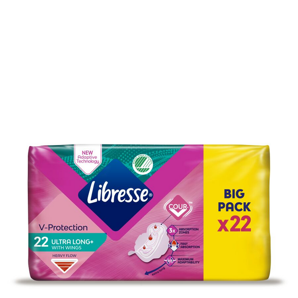 Libresse V-protection Ultra Long+ siivellisissä siteissämme on käytetty Cour-V™ -teknologiaa. Tuloksena on huippumiellyttävä joustava side, joka mukautuu kehoosi. Lisäksi pehmeiden siivekkeellisten siteiden kolme imuvyöhykettä imevät veren itseensä välittömästä ja pitävät V-zonesi raikkaana ja suojattuna koko päivän. Voit siis tuntea olosi täysin varmaksi kuukautistesi aikana riippumatta siitä, mitä teet tai missä olet. Tuote on dermatologisesti testattu ja hajusteeton.