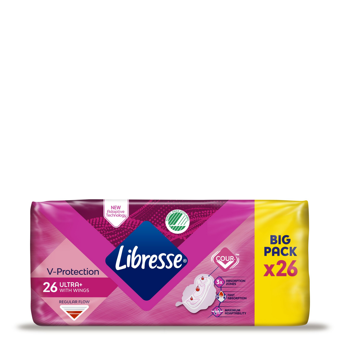 Siivellisissa Libresse V-protection Ultra+ -siteissämme on käytetty Cour-V™ -teknologiaa. Tuloksena on huippumiellyttävä joustava side, joka mukautuu kehoosi. Lisäksi pehmeiden siivekkeellisten siteiden kolme imuvyöhykettä imevät veren itseensä välittömästä ja pitävät V-zonesi raikkaana ja suojattuna koko päivän. Tuote on dermatologisesti testattu ja hajusteeton.