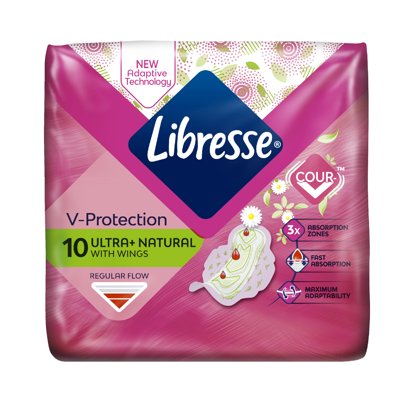 Siivekkeellinen Libresse Ultra+ Normal Wing Natural -side FRESHPROTECT -ominaisuudella, joka auttaa pitämään olosi raikkaana. Libresse Ultra+ Normal Wing Natural sisältää rauhoittavista ja kosteuttavista ominaisuuksista tunnettua, luontaista kamomilla- ja aloe vera -uutetta. Siteessä on uusi erittäin hengittävä Airtech -teknologialla kehitetty päälikerros, joka pitää olosi raikkaana. Siteen ainutlaatuisen SecureFit™ -ominaisuuden ansiosta tämä mukailee kehosi muotoja ja pysyy paikoillaan ehkäisten ohivuotoja. Voit siis tuntea olosi täysin varmaksi kuukautistesi aikana riippumatta siitä, mitä teet tai missä olet. Tuote on dermatologisesti testattu.