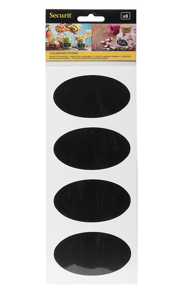 8 kpl mustia ovaalinmallisia tarroja, joihin voi kirjoittaa liitautaulutusseilla. Esim. keittiöpurkkeihin.