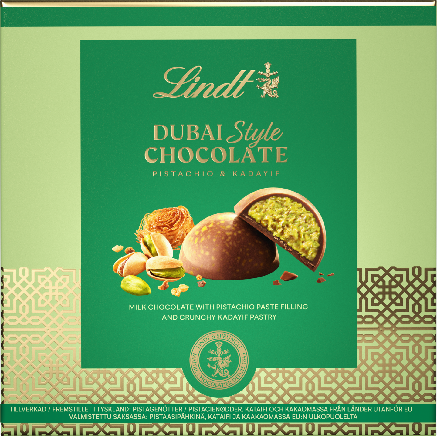 Anna lahjaksi maailman mahdollisesti halutuin suklaa: Lindt Dubai Style, nyt hienossa konvehtirasiassa. Hemmottele läheisiäsi ylellisellä Lindt Dubai Style suklaalla, joka on Lindt Suklaamestareiden ainutlaatuinen luomus. Hienoimmista ainesosista valmistetut konvehdit yhdistävät Lindtin hienon maitosuklaan täyteläiseen 45% pistaasia sisältävään pistaasikreemiin ja rapeaan kataifitaikinaan. Nauti herkullisesta yhdistelmästä laadukkaita ainesosia ja taidokasta käsityötä.