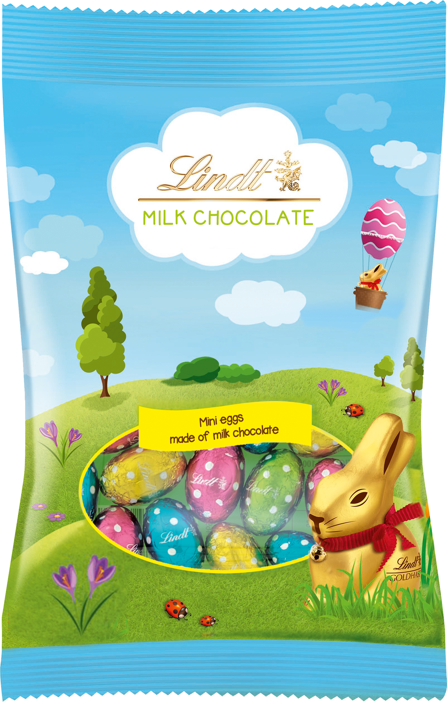 Lindt GOLD BUNNY on piilottanut värikkäät munansa! Minimunat ilahduttavat lapsia perinteisessä pääsiäisen vietossa. Pienet munan muotoiset suklaakonvehdit, jotka ovat hienointa Lindt-maitosuklaata.