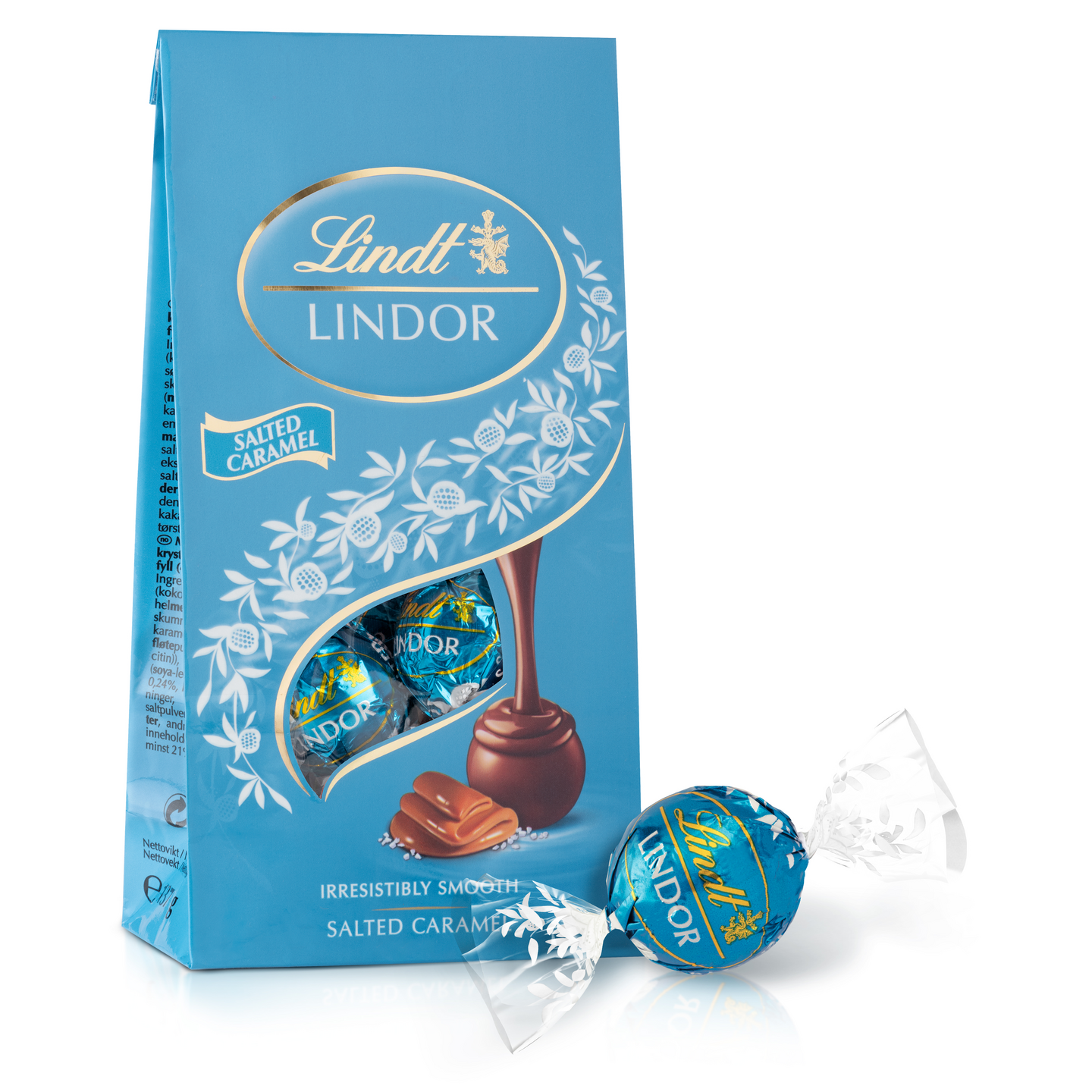 Nauti Lindtin vastustamattoman pehmeä LINDOR! Konvehdin hienoimmasta Lindt-maitosuklaasta valmistetussa herkullisessa kuoressa on ripaus merisuolaa ja sisältää pehmeän, kermaisen karamellitäytteen.Suklaareseptimme yhdistävät laadukkaimmat ainesosat ja Lindt suklaamestareiden intohimon vastustamattomille makuelämyksille. Luo itsellesi ihana LINDOR-hetki tai anna lahjaksi. Pussi sisältää noin 11 konvehtia.
